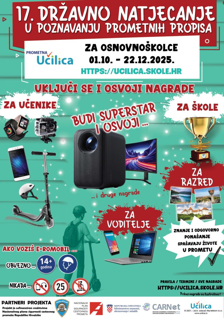 Dragi učenici, pozivamo Vas da se uključite u 17. Državno natjecanje u poznavanju prometnih propisa za učenike osnovnih škola na Prometnoj Učilici!