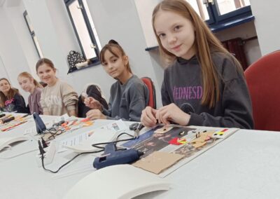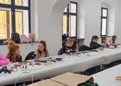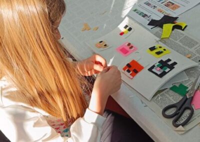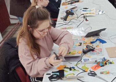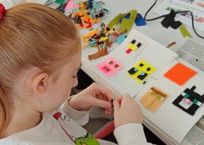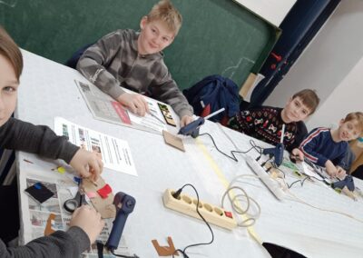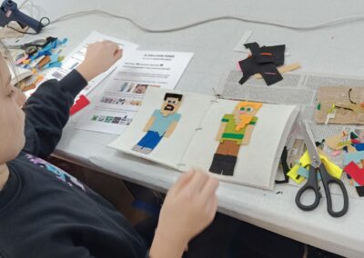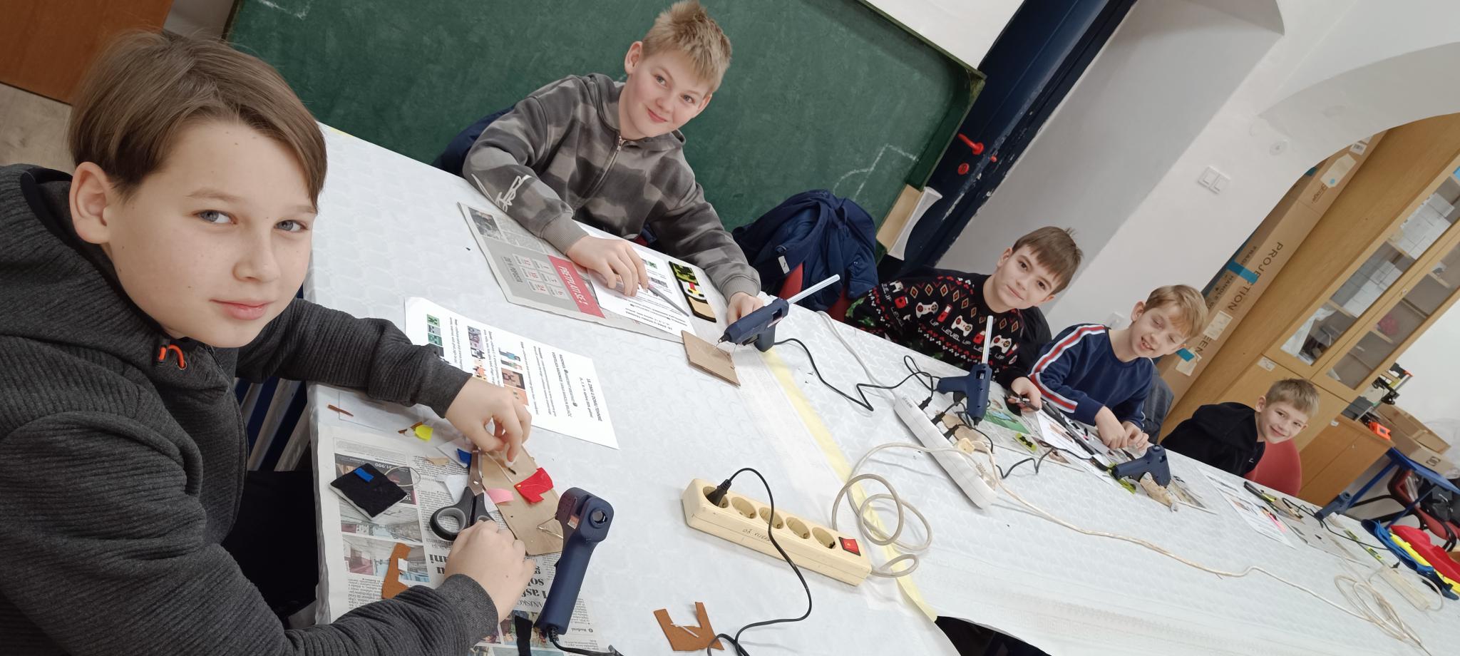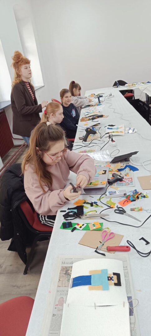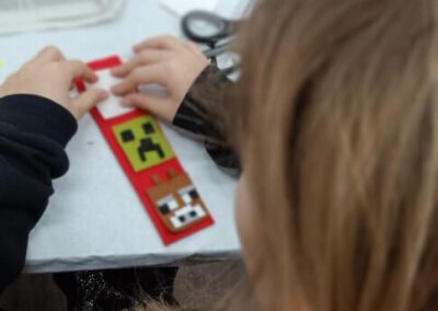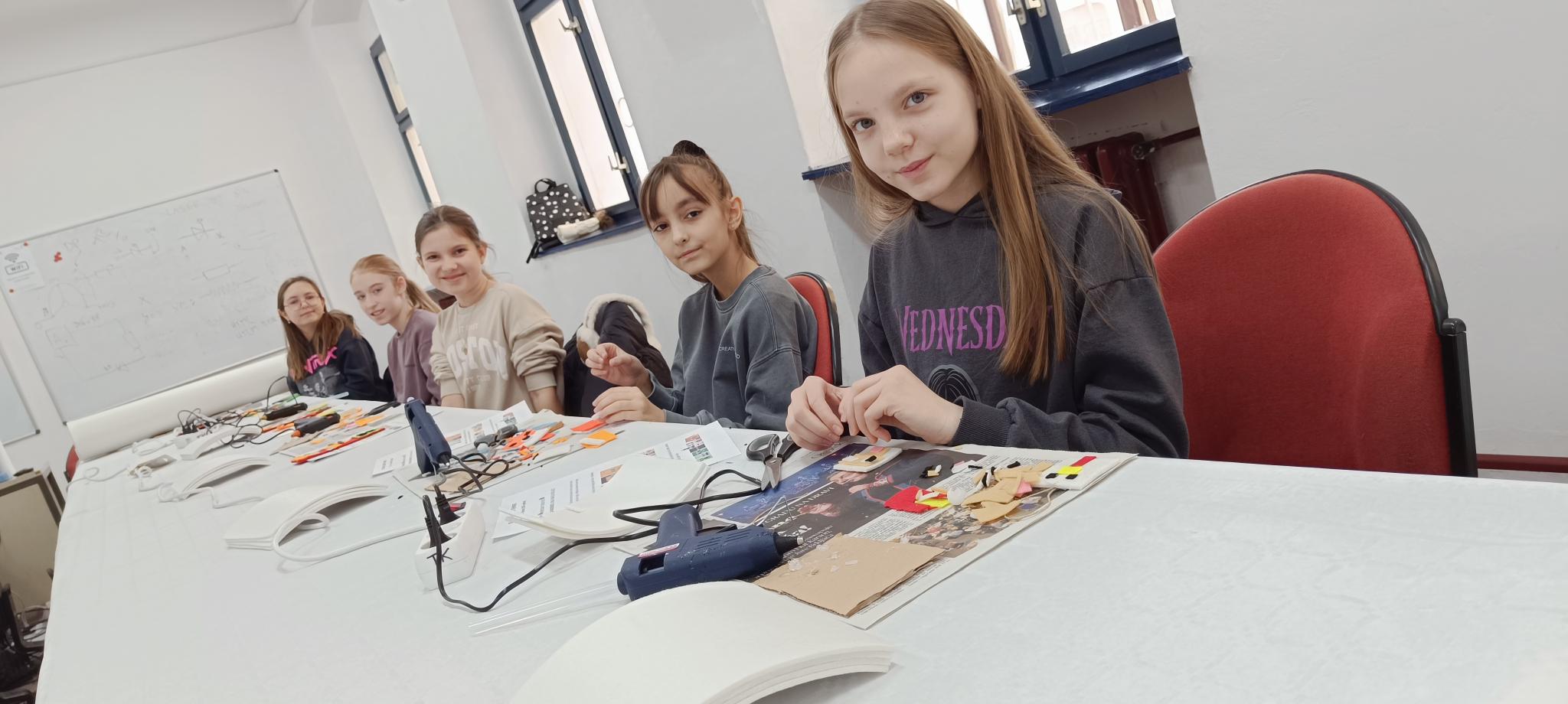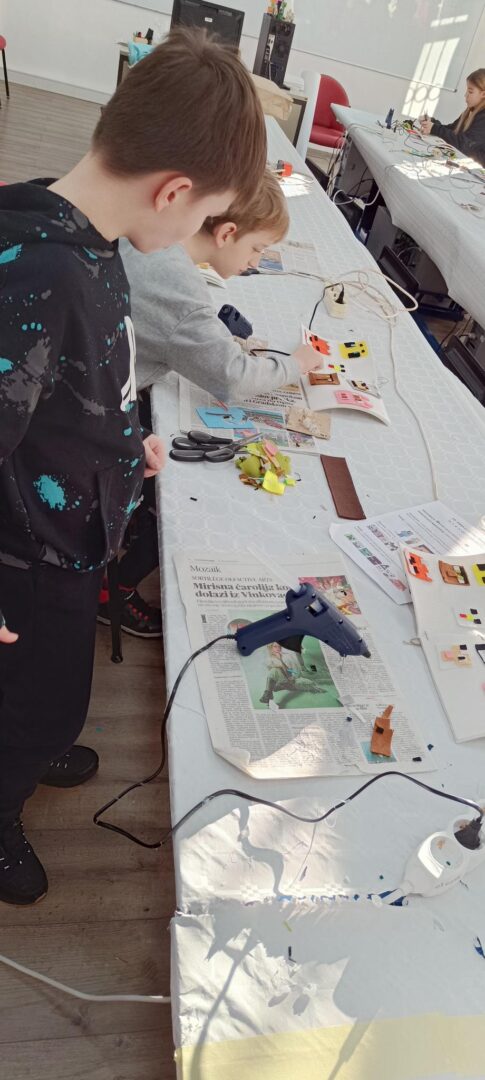 I ove je godine određeni broj učenika naše škole odlučio dio svojih zimskih praznika provesti u kreativnoj atmosferi Zime u Domu tehnike, 18. po redu. Uz već poznate radionice, ove je zime posjetiteljima posebno zanimljiva bila radionica “Minecraft kreativci”, na kojoj su učenici osnovnih škola razvijali finu motoriku izrađujući privjeske, bookmarkere i “tihu knjigu” od tri vrste raznobojnog filca s likovima iz popularne računalne igrice “Minecraft”. Djeca su radila sa škarama, šilom i vrućim ljepilom, a radionicu je vodila naša nastavnica tehničke kulture Sanja Marolin Brljačić. Jedna od polaznica, ujedno i učenica naše škole, novinarima je objasnila što je zapravo “Minecraft”. “To je igrica u kojoj se vodi borba za preživljavanje, a ima i creative mode, u kojem možemo graditi što želimo, a to je najbolje, jer možemo biti kreativni”, rekla je Tesa te pokazala svoju tihu knjigu s glavnim likovima Minecrafta, Alexom i Steveom.