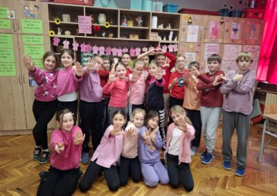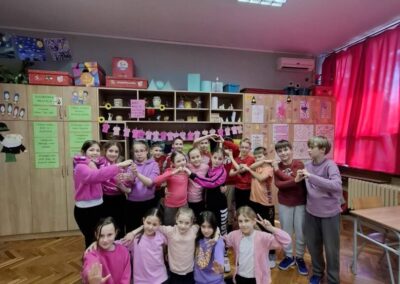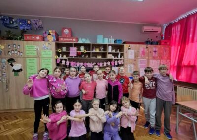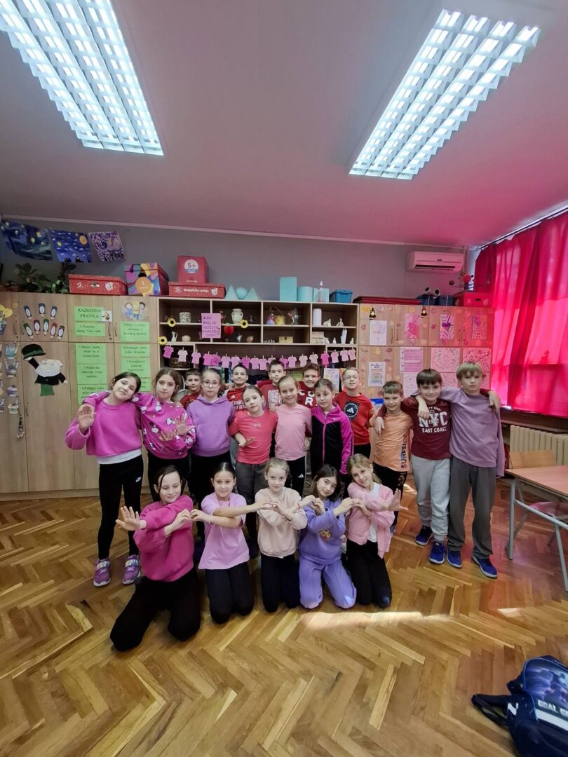 Povodom obilježavanja Dana ružičastih majica -dana borbe protiv vršnjačkog nasilja, učenici naše škole odjenuli su ružičaste majice i simbolično pokazali da su protiv bilo kakvog oblika vršnjačkog nasilja. S učiteljicama su razgovarali o tome zašto se obiljažava današnji dan, kako spriječiti nasilje, gledali su prigodne videospotove i crtane filmove. Školu je posjetila i naša kontakt policajka s kojom smo razgovarali o važnosti obilježavanja Dana ružičastih majica.